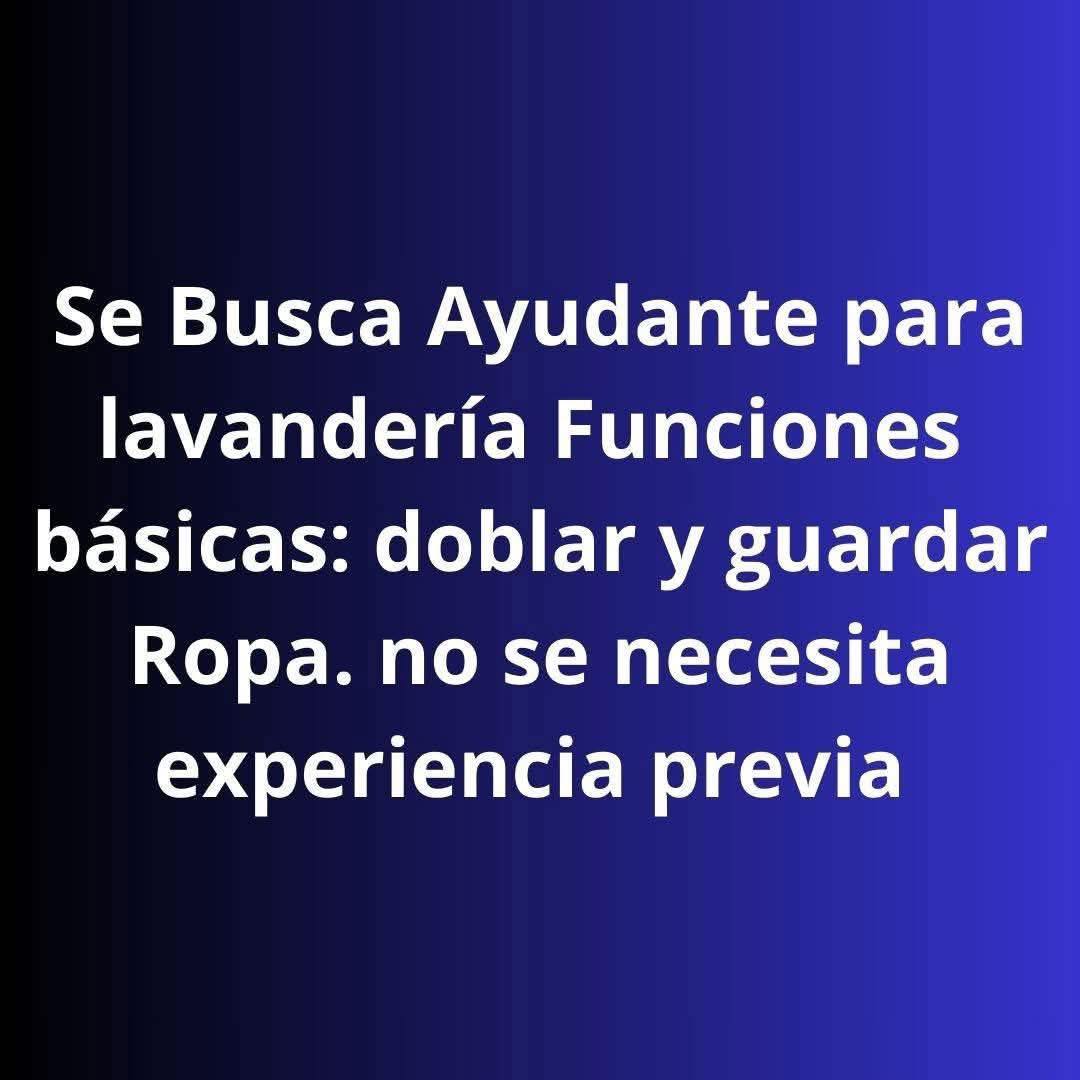 Se busca ayudantes de ambos sexos para trabajar en lavandería realizando funciones básicas como doblar y guardar ropa. No se necesita experiencia previa.